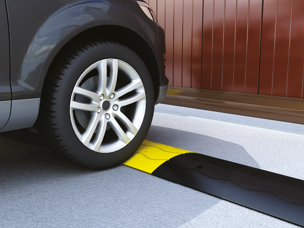 «Лежачий полицейский» (обеспечивает легкость прокладки электропроводки между столбами — без штробления дорожного покрытия; изготавливается из износостойкого искусственного каучука). |