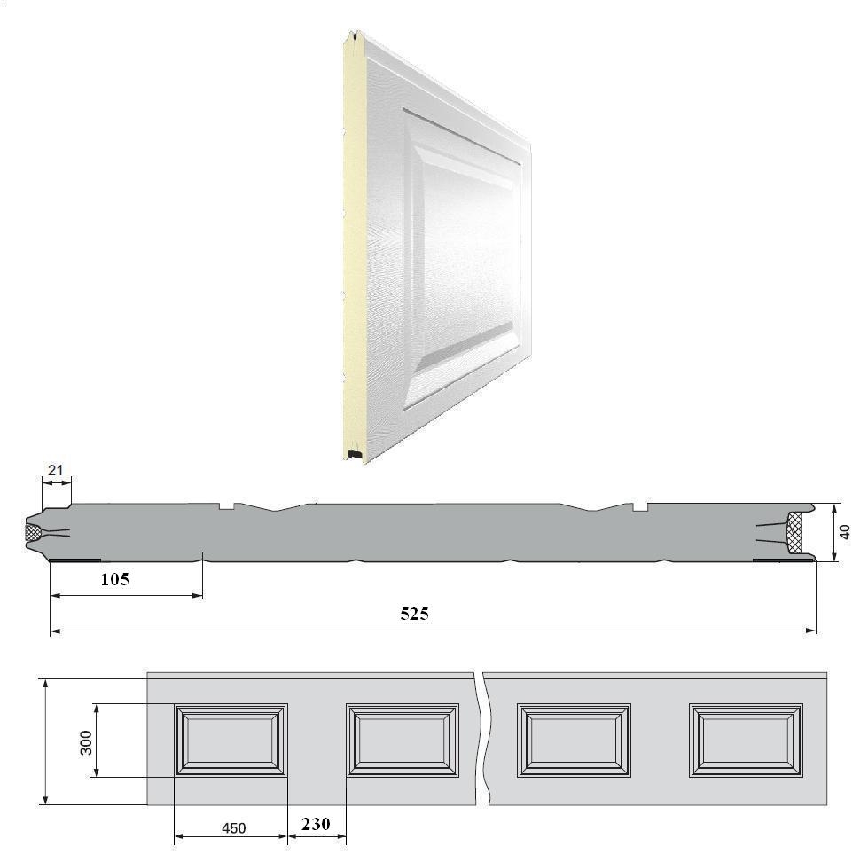 Панель «Филёнка» 525 мм шаг 230 мм Дерево/Стукко