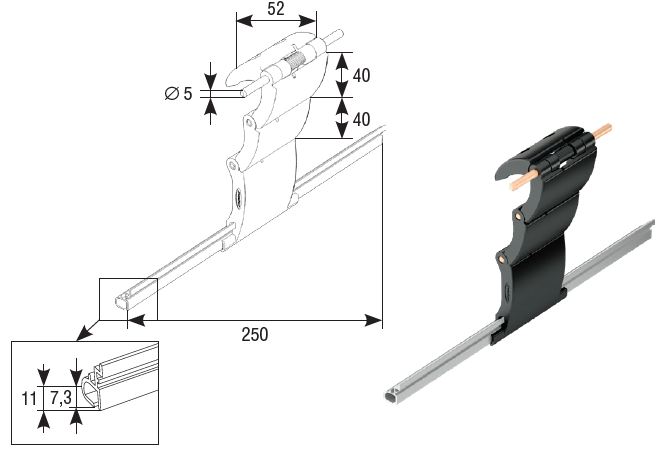 Для подъема полотна и его блокировки в опущенном состоянии. Для профилей RH77M, RHE56M, RHE56GM.