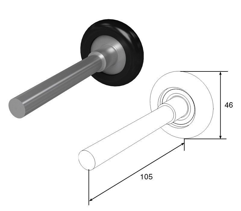Устанавливается в роликодержатель верхней (арт. SPL31) и боковой (арт. SPL20) опоры, во втулку нижнего углового кронштейна и устройств защиты от разрыва троса для ворот всех типов подъема.