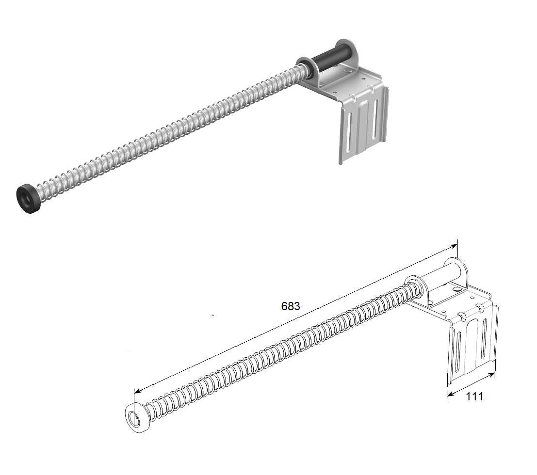 Устанавливается на ворота всех типов. Служит для амортизации удара полотна ворот при подъеме, а так же придания импульса движения ворот на закрытие.
