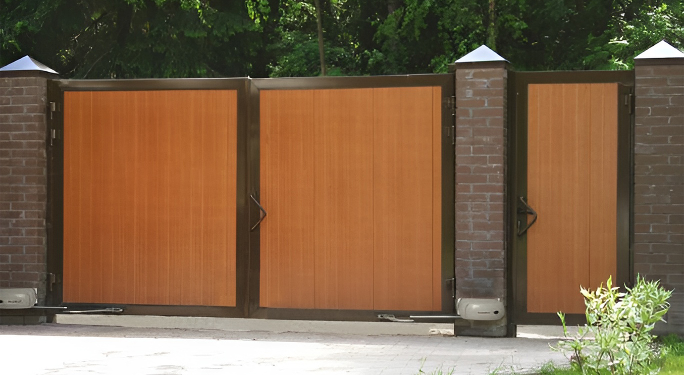 Концерн DoorHan выпускает калитки в алюминиевой раме с заполнением профлистом и сэндвич-панелями. Они изготавливаются из тех же листов, что и уличные распашные и откатные ворота DoorHan, благодаря чему обеспечивается их идеальное сочетание.