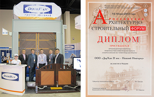 В мае 2013 года компания DoorHan-Нижний Новгород приняла участие в ежегодном Архитектурно-строительном форуме, который проходил на территории Всероссийского выставочного центра ЗАО «Нижегородская ярмарка».