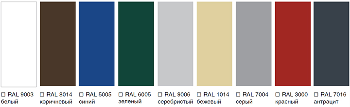 Стандартно откатные ворота изготавливаются из сэндвич-панелей толщиной 55 мм с гладкой поверхностью белого цвета (RAL 9003), но также возможен заказ полотна любого цвета по RAL-карте.