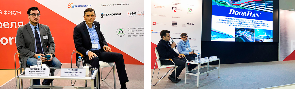 Компания DoorHan провела несколько продуктивных презентаций в рамках форума: руководитель отдела продаж алюминиевых систем Леонид Расулов выступил с докладом на тему «Алюминий в транспортной инфраструктуре», а руководитель отдела продаж полнокомлектных зданий Роман Цыкоза рассказал о применении алюминия в полнокомплектных зданиях DoorHan. Алюминиевые системы DoorHan были также продемонстрированы в рамках выставочной экспозиции.