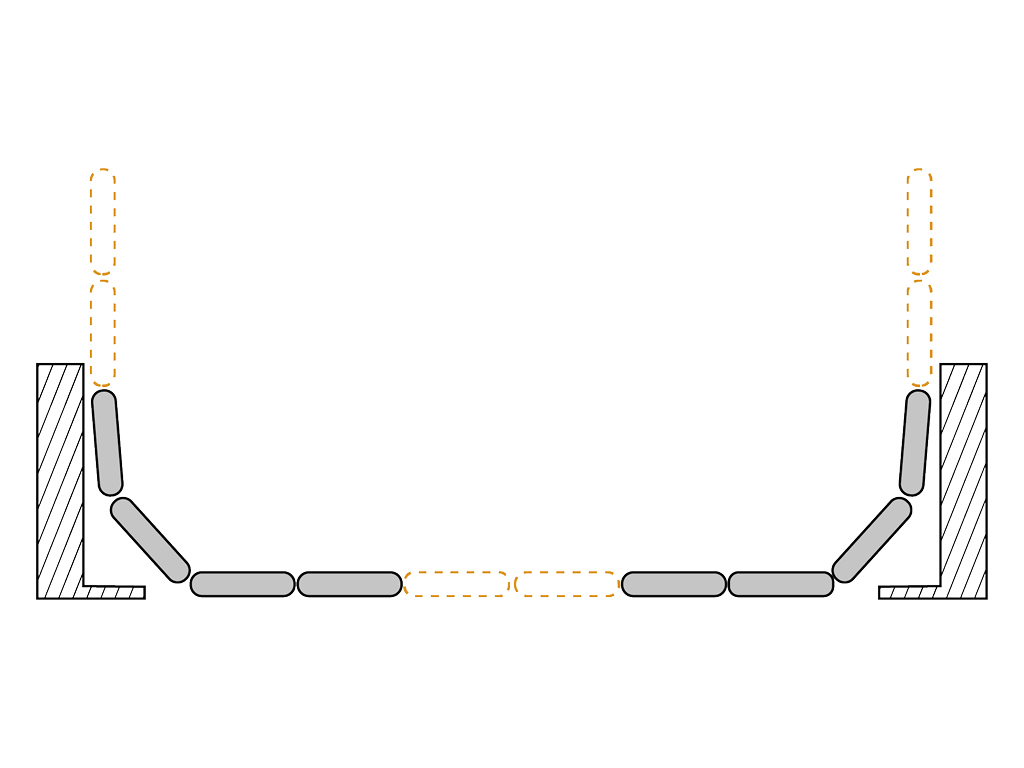Раскатывание полотен ворот по радиусу, вдоль боковых стен ангара. Конструкция ворот позволяет отказаться от «карманов» и тем самым cэкономить площадь застройки аэродрома. |