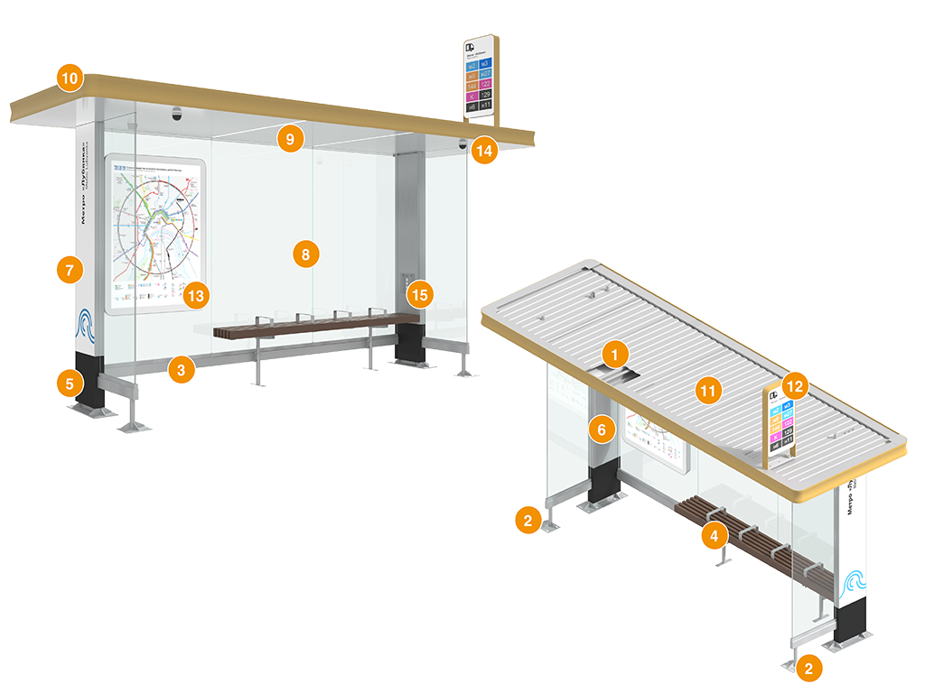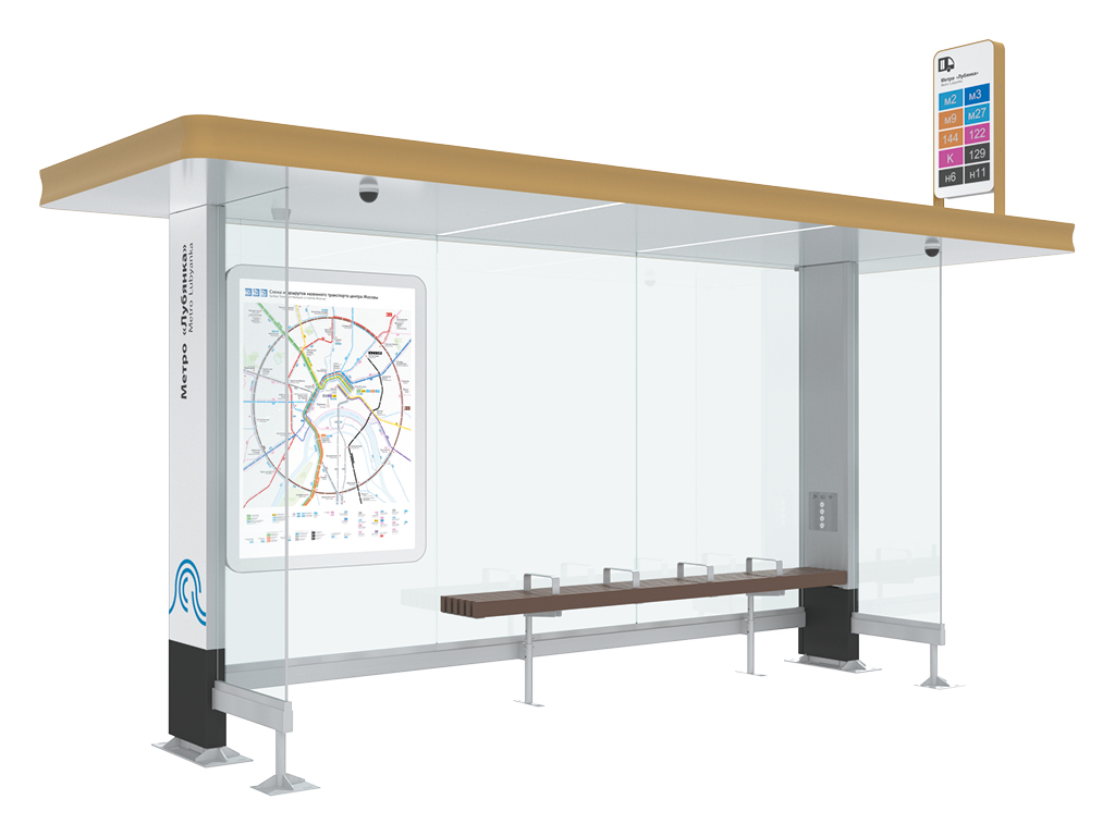 В остеклении конструкции используется закаленный триплекс, который в случае повреждения не осыпается, а покрываясь мелкими трещинами, остается в прежнем положении в раме остановочного павильона. Кроме того, павильон оборудован системой видеонаблюдения.