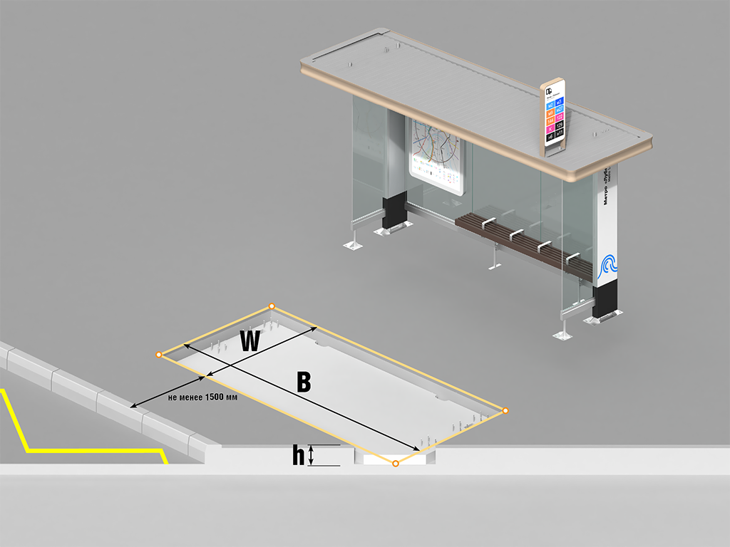 Остановочный павильон предназначен для установки в местах посадки-высадки пассажиров в пунктах со средним пассажиропотоком и узким тротуаром. Служит для создания комфортных условий для жителей города во время ожидания общественного транспорта. Конструкция рассчитана для установки в крупных городах и населенных пунктах. Павильон отличается долгим сроком службы и высокой ремонтопригодностью.