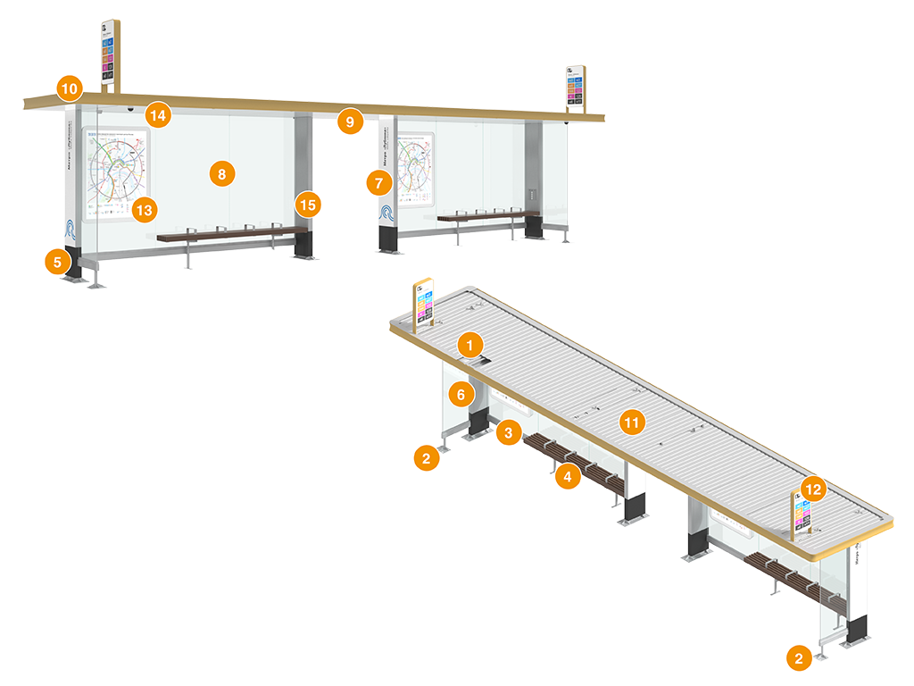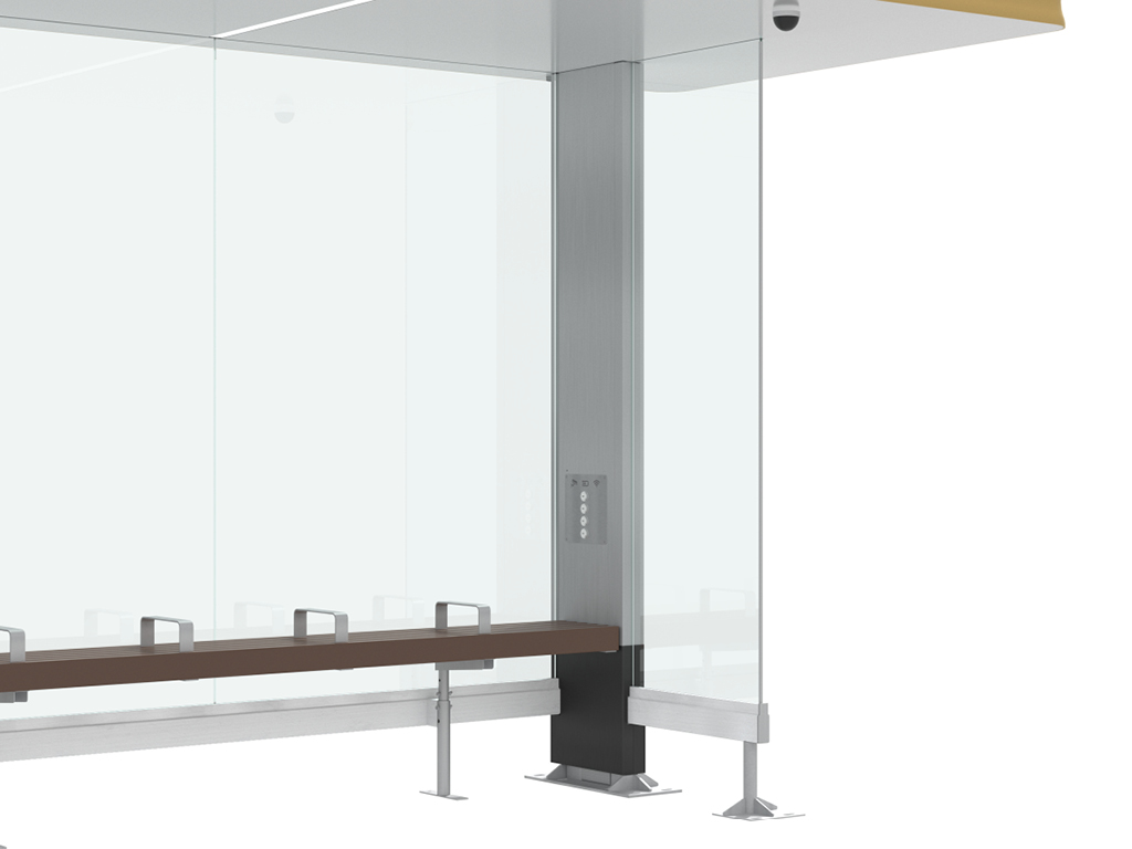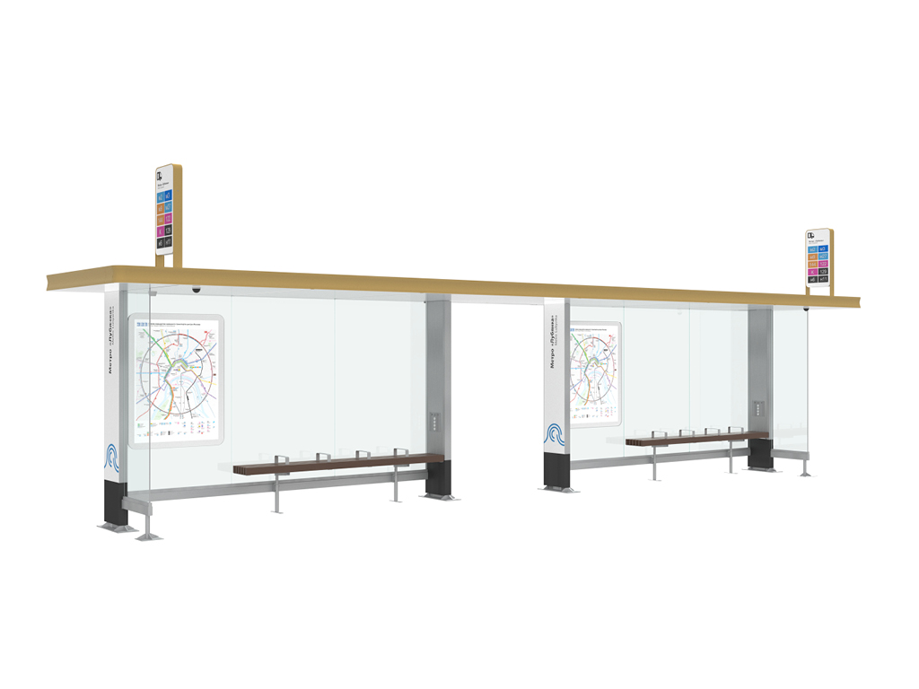 В остеклении конструкции используется закаленный триплекс, который в случае повреждения не осыпается, а покрываясь мелкими трещинами, остается в прежнем положении в раме остановочного павильона. Кроме того, павильон оборудован системой видеонаблюдения.