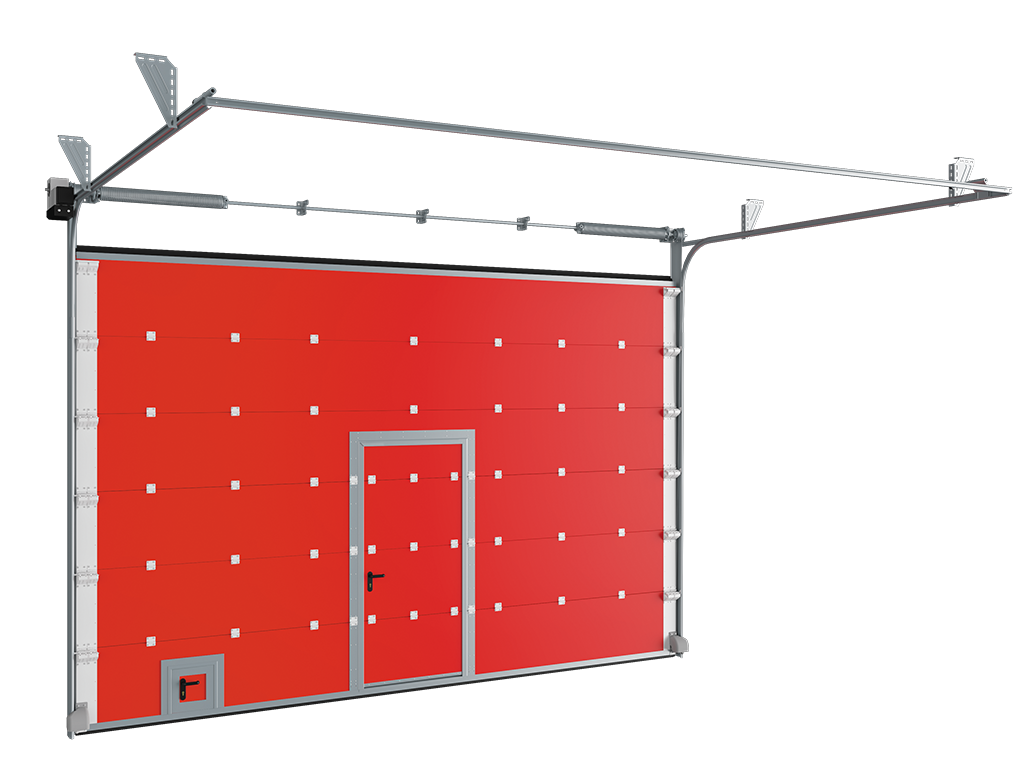 Встроенная калитка (размер в свету 900 × 2 051 мм) обеспечивает доступ в помещение без необходимости подъема ворот и может служить эвакуационным выходом. Возможно встраивание калитки в ворота шириной до 5 500 мм. |