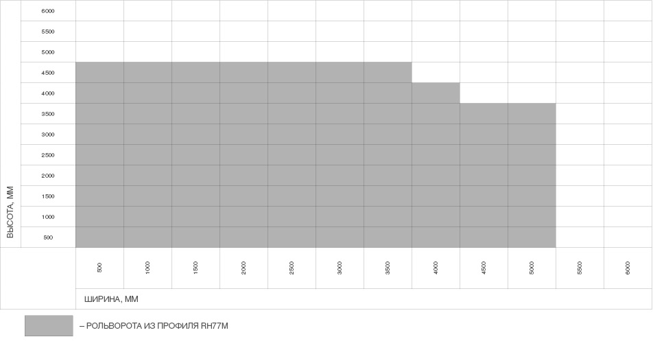 Устанавливаются в проемы гаражей, торговых павильонов, производственных и складских помещений. Также рольворота могут использоваться в случаях, когда невозможна установка распашных, сдвижных или секционных ворот. Ворота из профиля серии rh77m обладают высокой стойкостью к ветровым нагрузкам и могут быть дополнительно усилены специальным профилем серии rhe77m для повышения жесткости полотна. Можно комбинировать с решетчатым профилем серии rhe78g с поликарбонатной вставкой.