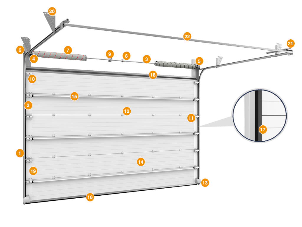 Пружинный механизм на торсионных пружинах, рассчитанный на 25 000 циклов, обеспечивает долговечность конструкции ворот. |