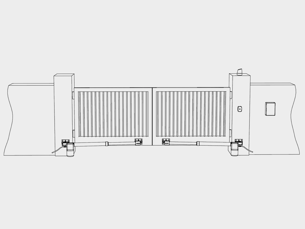 Автоматизация распашных ворот с массой створки до 400 кг, с открыванием створок как внутрь, так и наружу.