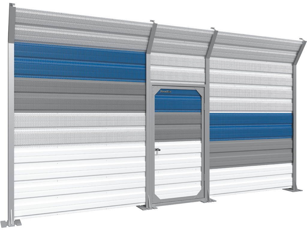 Разнообразие цветовых решений для шумозащитных панелей позволяет выполнить калитку в едином дизайне с шумозащитным экраном.