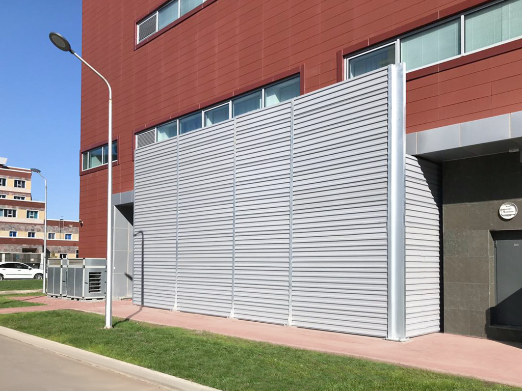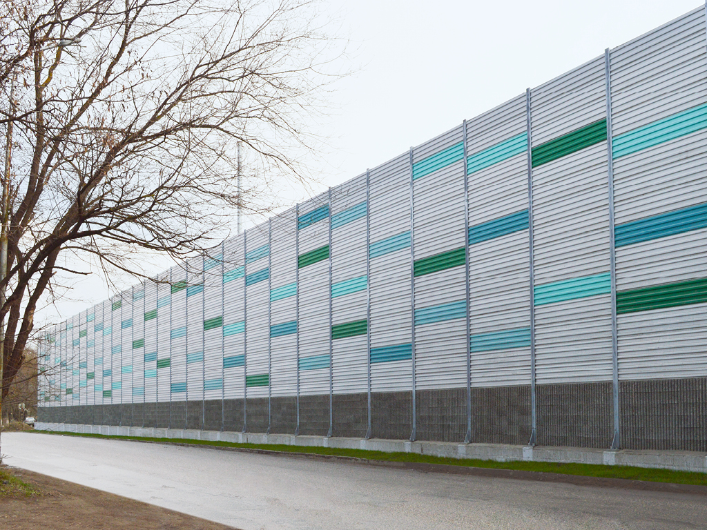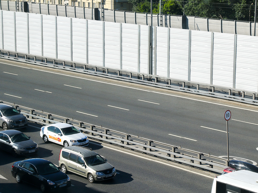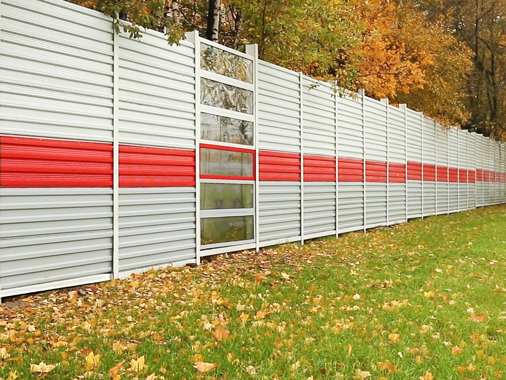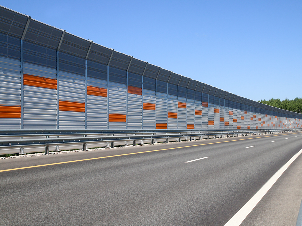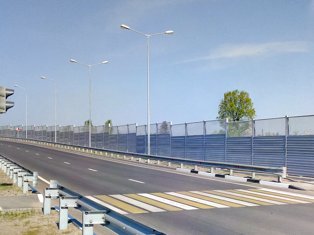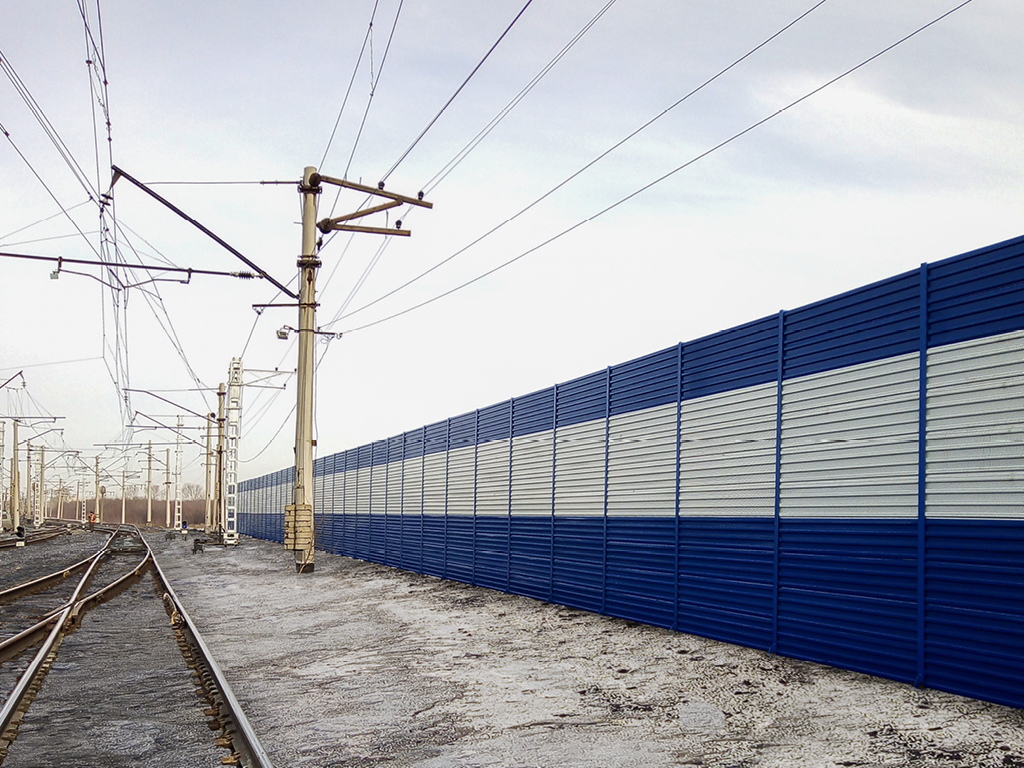 Применение в конструкции экрана шумозащитных панелей позволяет снизить уровень шума до регламентированных значений.