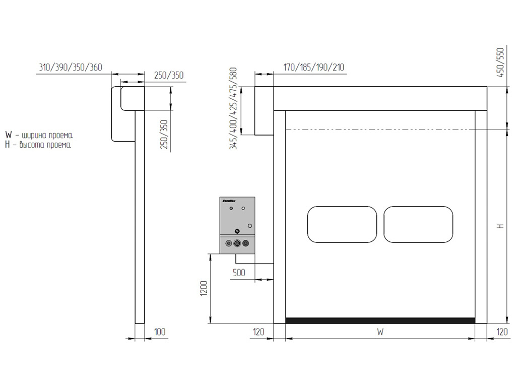 | H, мм Высота проема | 1 800–5 800 |