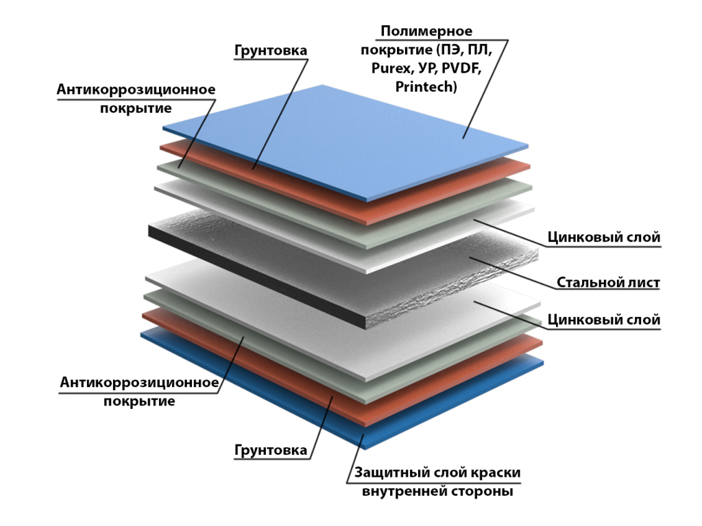 В качестве сырья для изготовления сэндвич-панелей используют холоднокатаную горячеоцинкованную тонколистовую сталь. Для производства строительных сэндвич-панелей применяют сталь толщиной 0,45–0,7 мм с различными видами полимерных покрытий.