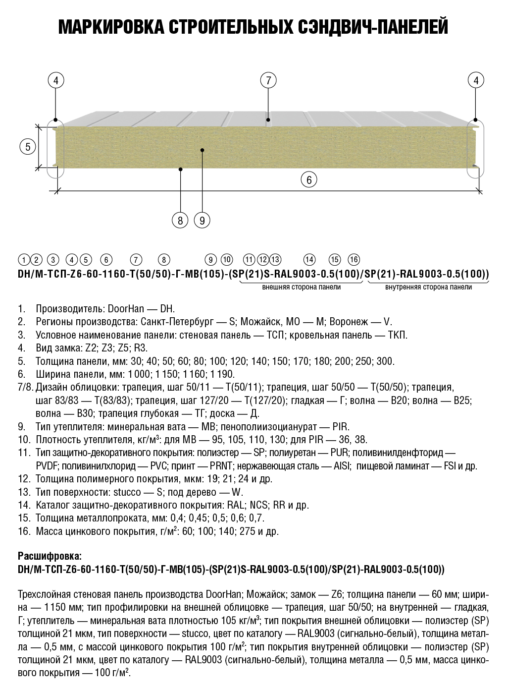 Расшифровка наименования строительных сэндвич-панелей.
