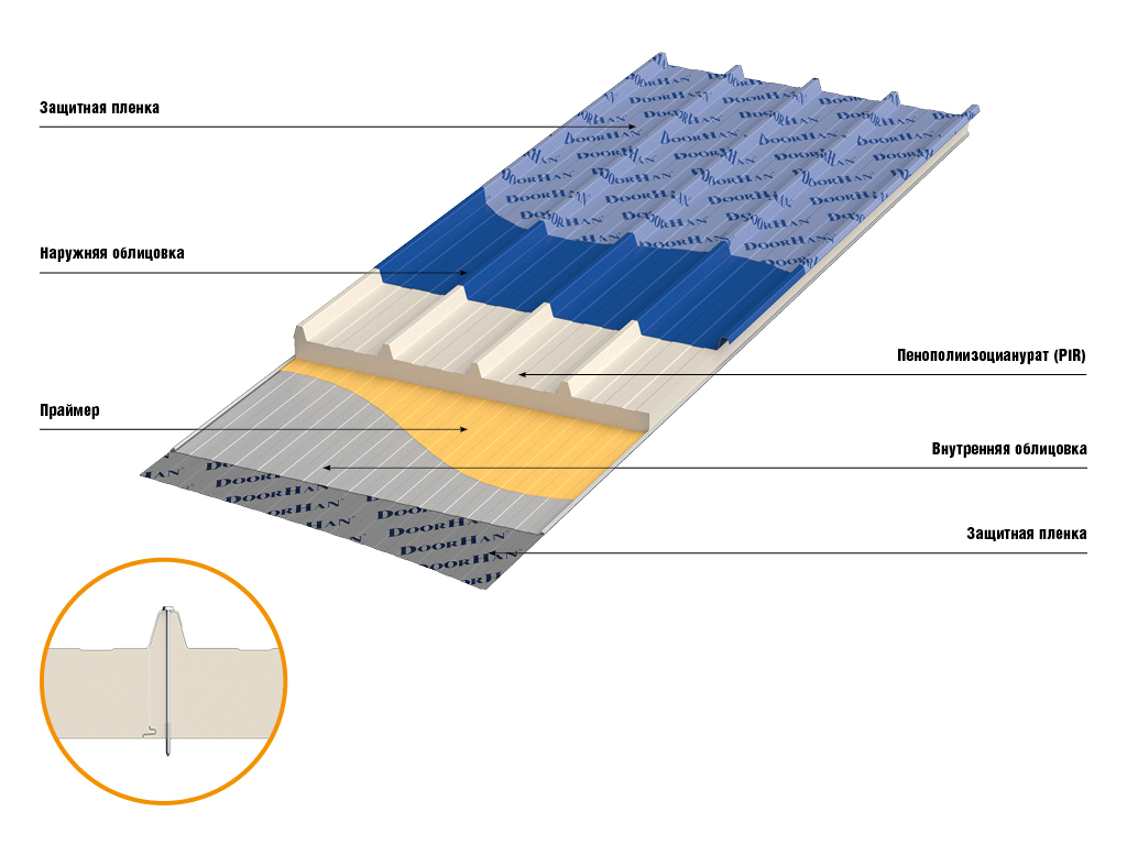 Вид профиля и замка сэндвич-панелей, регион производства – Воронеж (V)