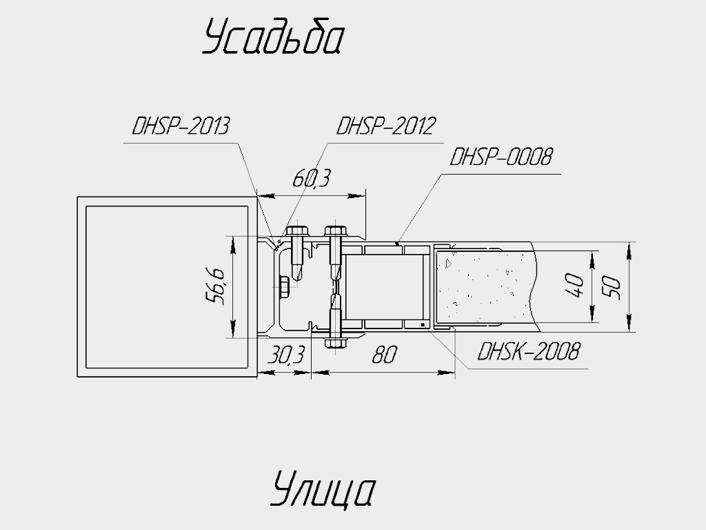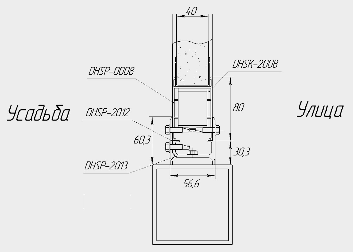 Врезной монтаж заборной секции с заполнением сэндвич-панелями. |