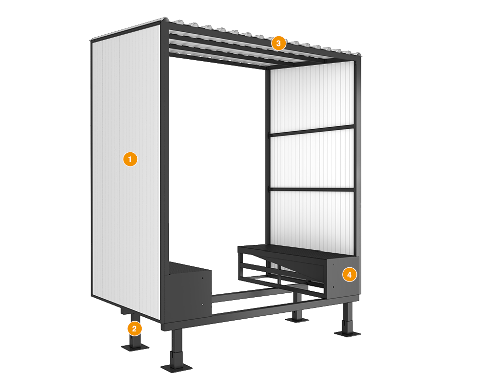 | Описание | Стены из сэндвич-панелей перегрузочного тамбура стандартной серии поставляются в разборном виде и собираются на объекте при монтаже |
