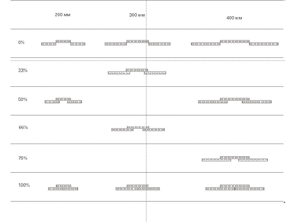 Если выбран коэффициент перекрытия 0%, то между лентами завес возможны зазоры.