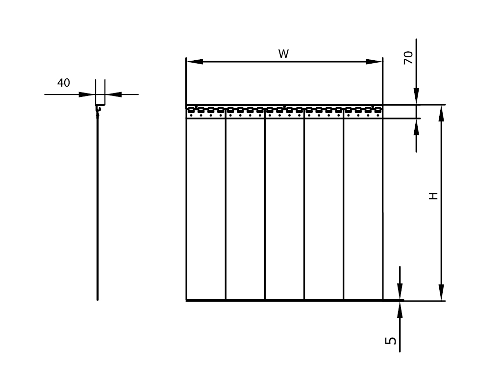 | Ширина, мм | Зависит от ширины завес |