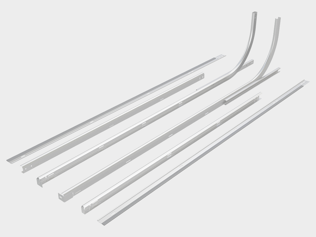 Количество в упаковке, шт. Упаковка щита — от 4 до 5 панелей; упаковка направляющих — 1 система направляющих; упаковка комплектующих — коробка с комплектацией