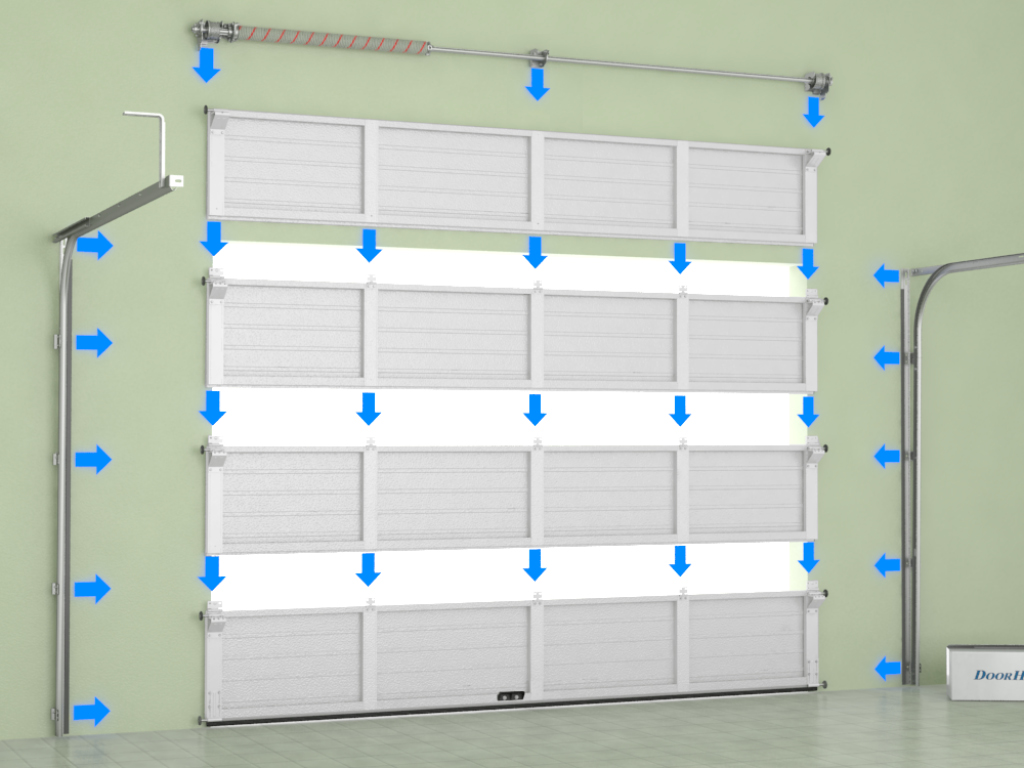 1. Секции полотна ворот должны плавно передвигаться по направляющим, а сами ворота должны быть сбалансированными, т. е. их вес должен компенсироваться крутящим моментом пружин.