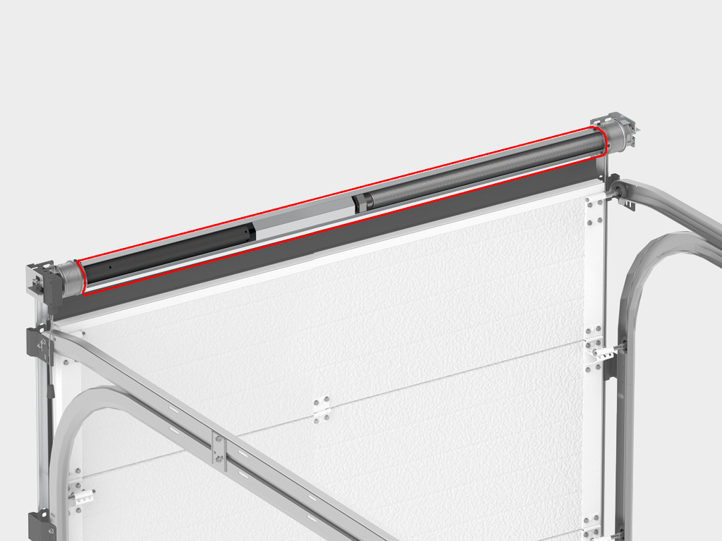 Балансировочный механизм на базе октагонального вала с интегрированным внутрь электроприводом позволяет компактно разместить ворота, сэкономив полезную площадь внутри гаража.