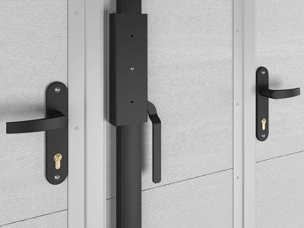 Механический замок позволяет запирать ворота как с внешней, так и внутренней стороны. Пассивный тип защиты распашных гаражных ворот обеспечивает ригельная задвижка, устанавливаемая на ворота при монтаже. |