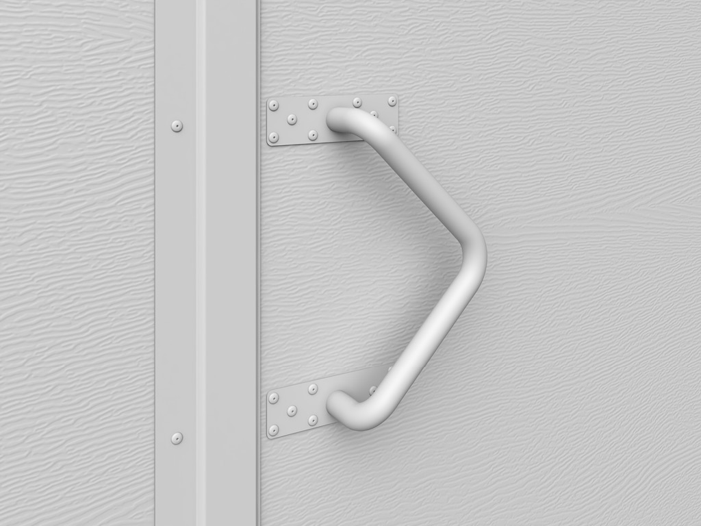Алюминиевую ручку можно установить на створки с внешней стороны ворот. |