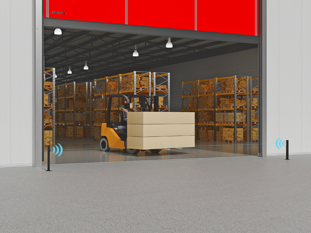 Фотоэлементы устанавливаются на высоте 500 мм от пола, а также в верхних точках боковых стоек для выявления некорректной размотки полотна при открывании. |