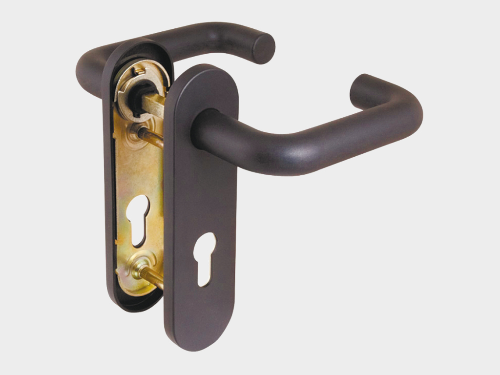 В базовую комплектацию входят универсальный односистемный замок под цилиндр для противопожарных дверей (механизм «ключ-ключ»), подпружиненная стальная ручка с негорючим покрытием «нейлон».