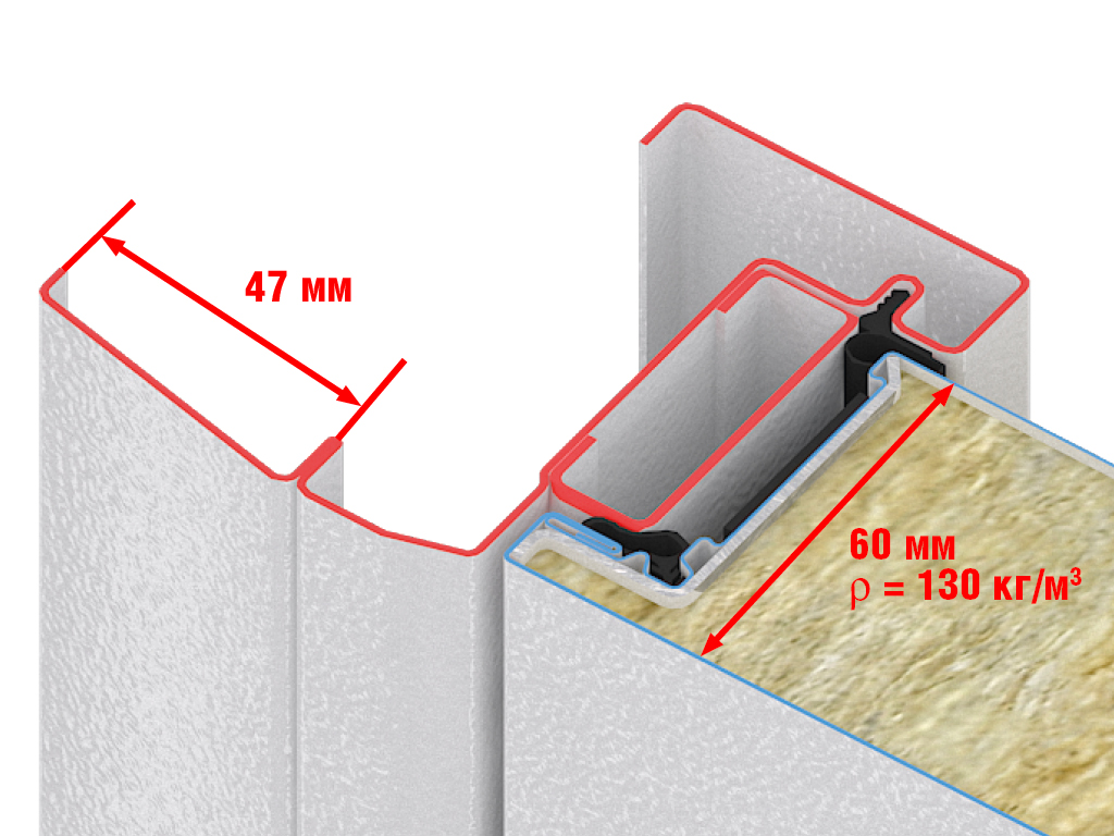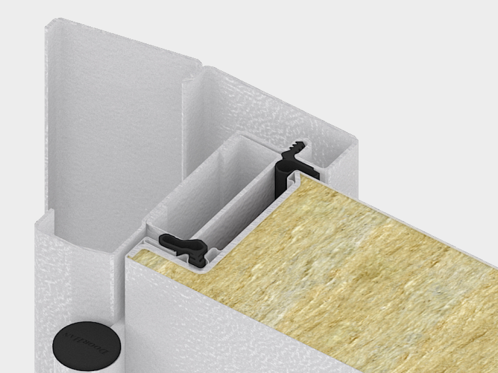 Высокопрочное полотно типа «сэндвич» толщиной 60 мм и рама из оцинкованной холоднокатаной стали обладают высокой коррозионной стойкостью.