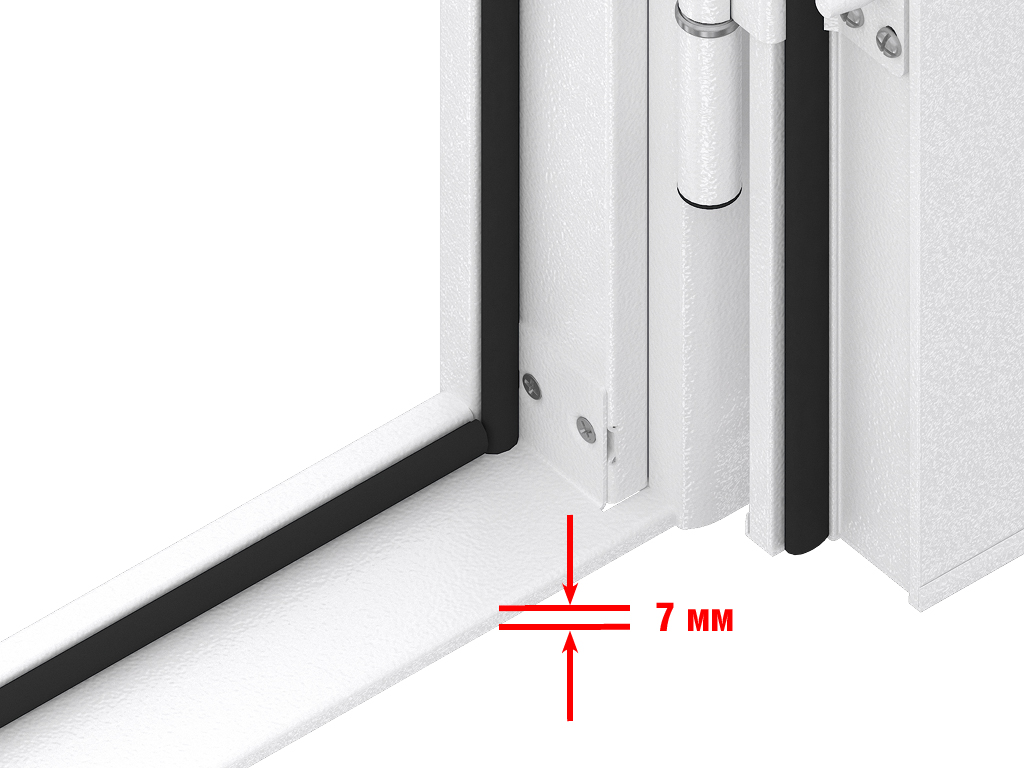 Съемный стальной порог создает дополнительную шумо- и дымоизоляцию, обеспечивая плотный притвор в нижней части двери. В случае особых требований к помещениям и зданиям определенного функционального назначения (для маломобильных групп населения) может быть демонтирован.